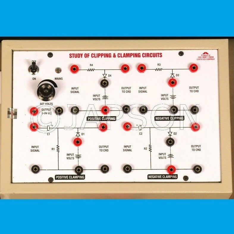 Features : Instrument comprises of DC Regulated Power Supply 0-3 VDC/150mA, Circuit diagram for Clipping & Clamping Printed, components placed inside & connections brought out at 4mm Sockets.