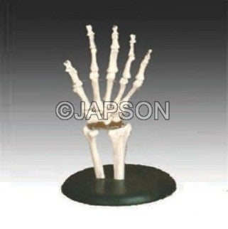 Demonstrates all of hand functionality and the external anatomical structures. Made of PVC plastic. On stand. Life size.