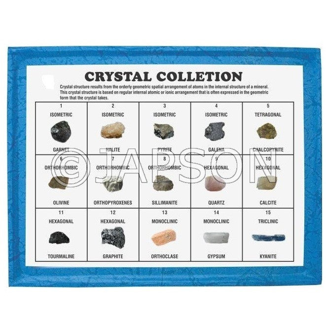 Crystal structure results from the orderly geometric spatial arrangement of atoms in the internal structure of a mineral. This crystal structure is based on regular internal atomic or ionic arrangement that is often expressed in the geometric form that the crystal takes. This Collection contains 15 Minerals having Isometric, Tetragonal, Orthorhombic, Hexagonal, Monoclinic & Triclinic Crystal Systems.