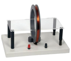 A multi-turn circular coil consists of a durable, break-resistant plastic base with two connection terminals. A copper wire is wound in a circular shape with a diameter of no less than 15 cm, forming multiple layers of turns. The coil is connected to the base at two points and the terminals.